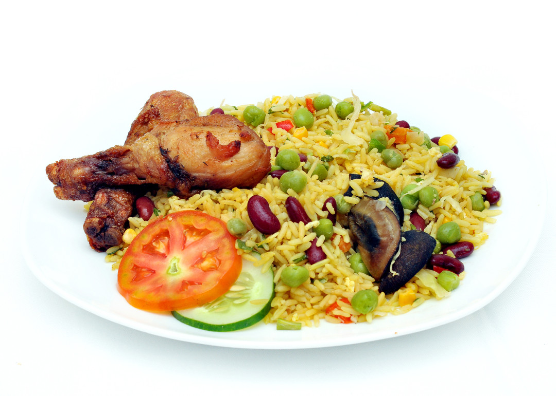 Long grain rice is stir-fried and slowly